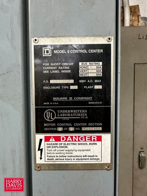 Square D, Model: 6 MCC Horizontal Power 600 Amp, Vertical Power 600 Amp with (9) Disconnects - Rigging Fee: $2,100