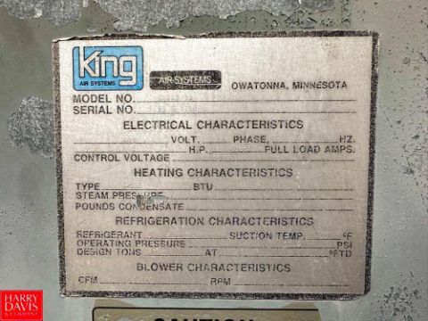 King Air Handler, Model: C2025-95, S/N: 95-Valves-2718-L - Rigging Fee: $12,500