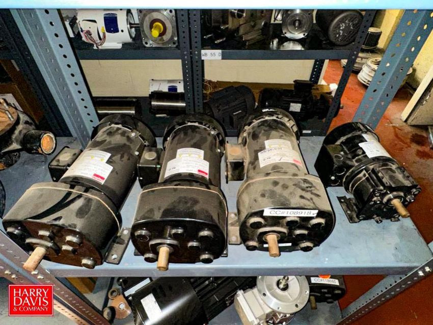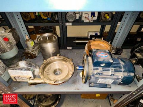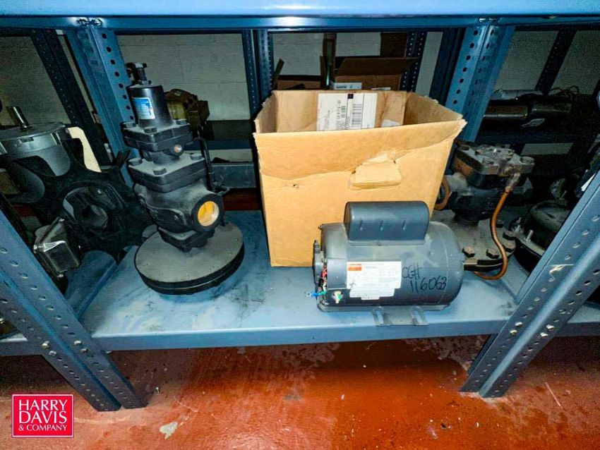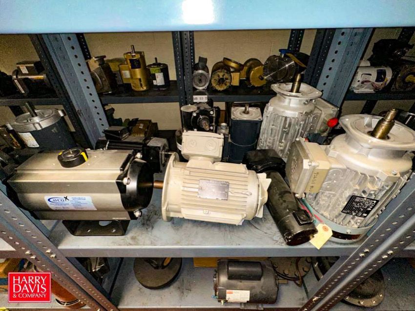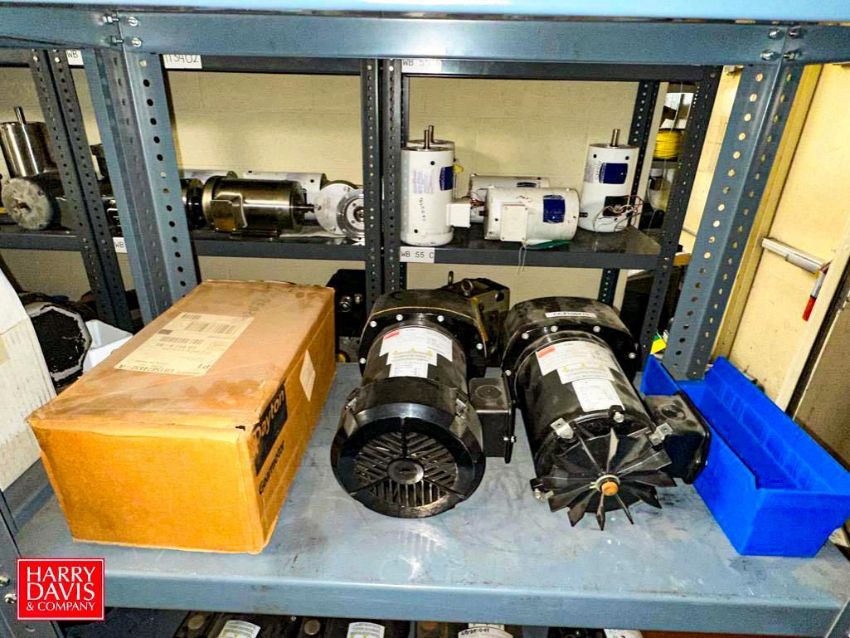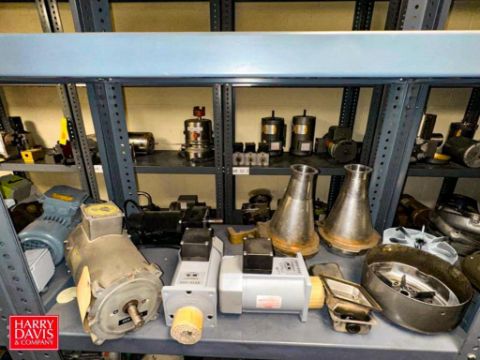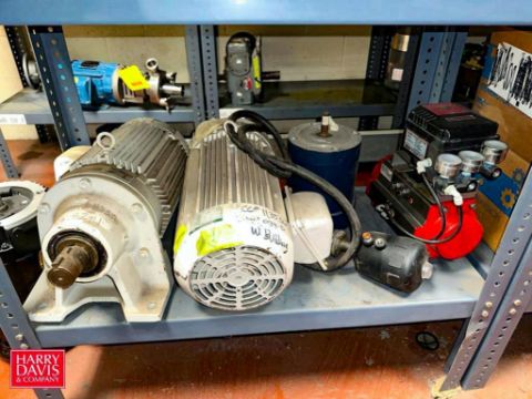 Assorted Dayton, Leeson, Brother, Nord and other Motors, Vacuum Pump, Gear Drives: up to .5 HP and (6) Sections: Steel Shelving - Rigging Fee: $900