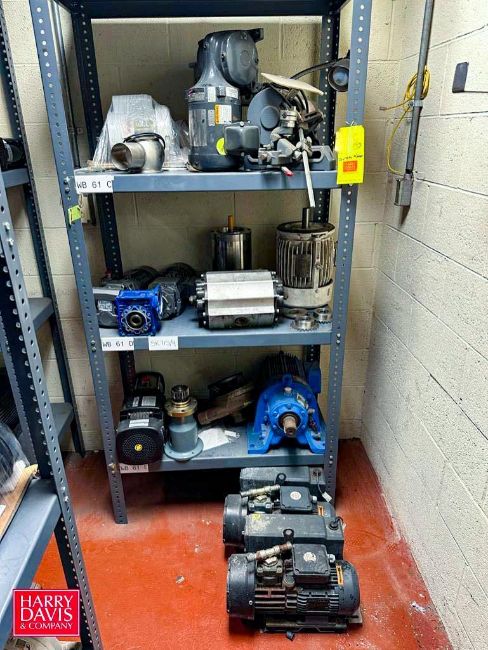 Assorted Browing, Baldor, Nord, IRONman and other Motors, Vacuum Pumps, Gear Drives: up to .75 HP and (6) Sections: Steel Shelving - Rigging Fee: $900