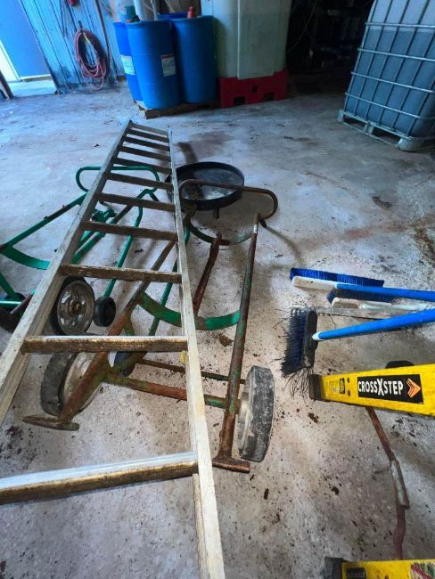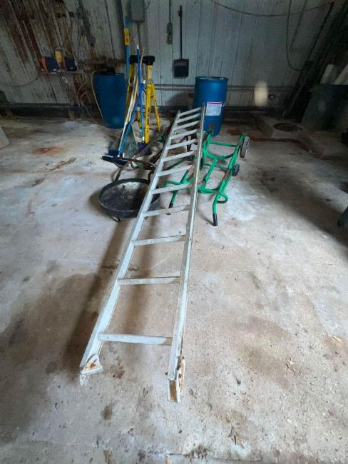 Drum Tray, (2) Drum Dollies and Aluminum Ladder: 10' (Subject to BULK BID: Lot 400) - Rigging Fee: $100