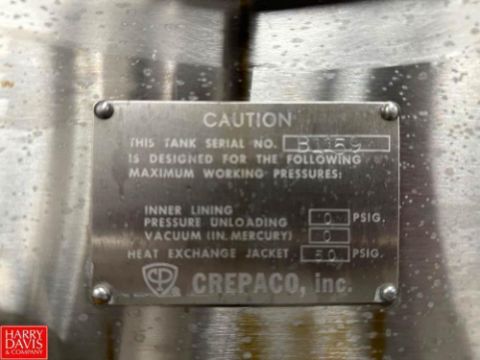 Crepaco 10,000 Gallon Jacketed S/S Silo, S/N: B1159 with Sensors and Gauge - Rigging Fee: $4,675