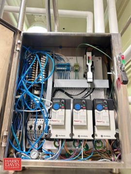 AGC Skid Mounted Pasteurizer, Including: AGC 3-Zone S/S Plate Heat Exchanger, Model: PROZSH, S/N: 2015399, S/S Holding Tube, (2) 15 Gallon S/S Balance Tanks, S/S Clad Motors, Flow Meter, S/S Inline Filter S/S Clad Motors, Assorted SPX and other S/S Valves, Including: Air, Air Actuated, Butterfly and Steam, S/S Magnetic Trap, Allen-Bradley PanelView Plus 1000 Touch Screen HMI, (3) Anderson AV-9000 Chart Recorders, Allen-Bradley SLC 5/05 CPU with (11) I/Os, (3) PowerFlex 525 and (3) 70 Variable-Frequency Drives, Relays, Switches and S/S Enclosure: Mounted S/S Skid - Rigging Fee: $4,750