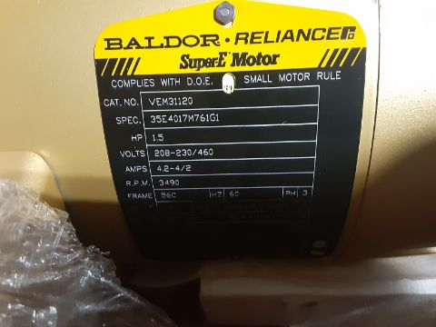 NEW Baldor-Reliance 1.5 HP 3,490 RPM Motor (Location: Rome, GA) - Rigging Fee: $200