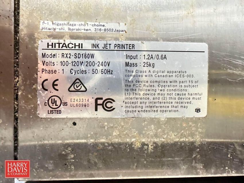 Hitachi Ink Jet Printer, Model: RX2-SD160W with S/S Cart (Location: Export, PA) - Rigging Fee: $125 - Rigging Fee: $75