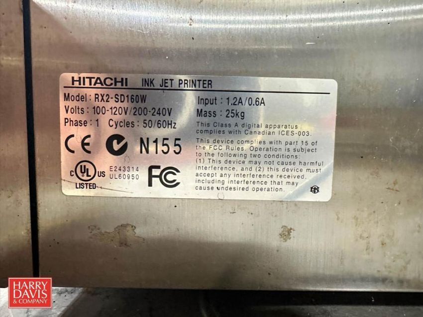 Hitachi Ink Jet Printer, Model: RX2-SD160W with S/S Cart (Location: Export, PA) - Rigging Fee: $125 - Rigging Fee: $75