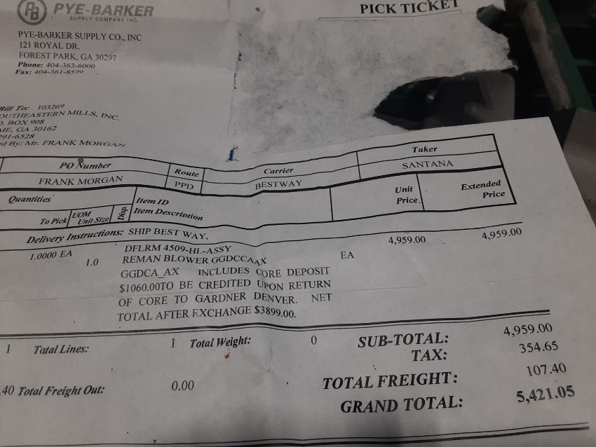 REMANUFACTURED & UNUSED Gardner Denver Duraflow Blower Unit, Model: 4509-VT STD, S/N: S44095 (Location: Rome, GA) - Rigging Fee: $200