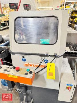 2012 ELUMATEC Miter Saw, Model: MGS 142/11, S/N: 1421130670 with Digital Read Out, (2) Roller Conveyors: 20' x 10" and 10' x 12" and Space Blades