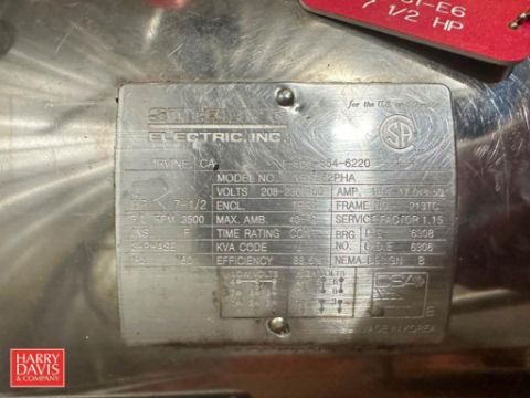 Fristam Centrifugal Pump, Model: FPX3522-140, S/N: FPX35220204254 with Sterling S/S Clad 7.5 HP 3,500 RPM Motor: Mounted on S/S Base - Rigging Fee: $100