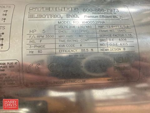 Alfa Laval Centrifugal Pump, Model: 9634055625, S/N: 855494 with Sterling S/S Clad 5 HP 3,500 RPM Motor and Tri-Clover 3-Way S/S Air Valve: Mounted on S/S Base - Rigging Fee: $150