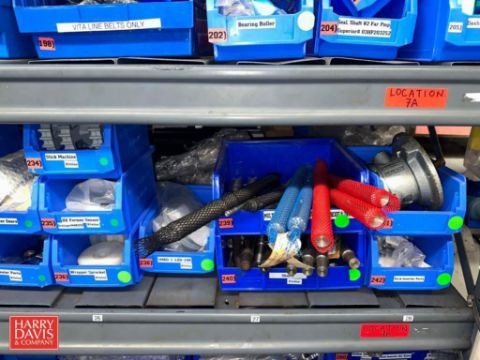 Complete Vitaline 18-Wide Flooded Popsicle System Including: Gram Stormax 18-Valve Inline S/S Popsicle Inserter, Assorted Flavor Hoppers, Change and Support Parts, Gram Stormax 18-Valve Inline S/S Popsicle Inserter with Allen-Bradley PanelView Plus 700 Touch Screen HMI, with 4oz S/S Novelty Molds, 2oz S/S Novelty Molds, 6oz S/S Novelty Molds, 5oz S/S Novelty Molds, Assorted Vitaline Parts, Including: Bearings and Bearing Shafts, Sprockets, Chain, Springs, O-Rings, Cylinders, S/S Fittings and Clamps, Cable, Motor and Valve Parts, Transducers, Stick Inserter Parts and Compressor Kit, Qingdao Golden S/S Packaging Wrapper, Model: GTA, S/N: 80430-1, Mitsubishi PLC and Variable-Frequency Drive, Videojet Data Flex 6530 Touch Screen HMI and S/S Framed Conveyer: 92” x 5’, Qingdao Golden S/S Packaging Wrapper, Model: GTA, S/N: 80430-3, Mitsubishi PLC and Variable-Frequency Drive, Videojet Data Flex 6530 Touch Screen HMI and S/S Framed Conveyer: 5’ x 5’, and Qingdao Golden S/S Packaging Wrapper, Model: GTA, S/N: 80430-2, Mitsubishi PLC and Variable-Frequency Drive, Videojet Data Flex 6530 Touch Screen HMI and S/S Framed Conveyer: 8’ x 7’ - Rigging Fee: Contact HDC