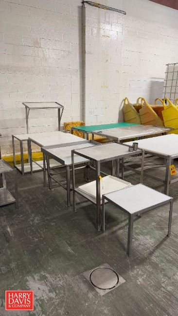 S/S Base Tables with Poly Top: 25" x 20", 31" x 23", 40" x 34", 3' x 30", 45" x 22" - Rigging Fee: $250