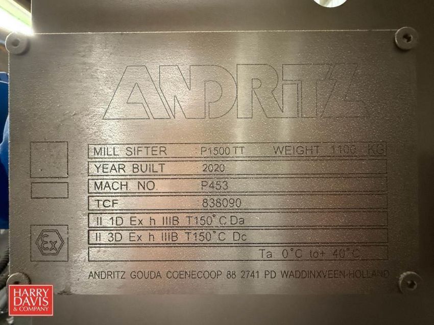 Andritz Mill Sifter, Model: P1500TT, S/N: P453 Including: Inner Changeable Screen, Mesutronic Metal Detector, Dual Horizon Flake Hoppers, QA Bends, Powder Valve, (3) Airlocks and Fike Explosion Protection System (Controls Not Included) (Subject to BULK BID: Lot 117) - Rigging Fee: $8,500