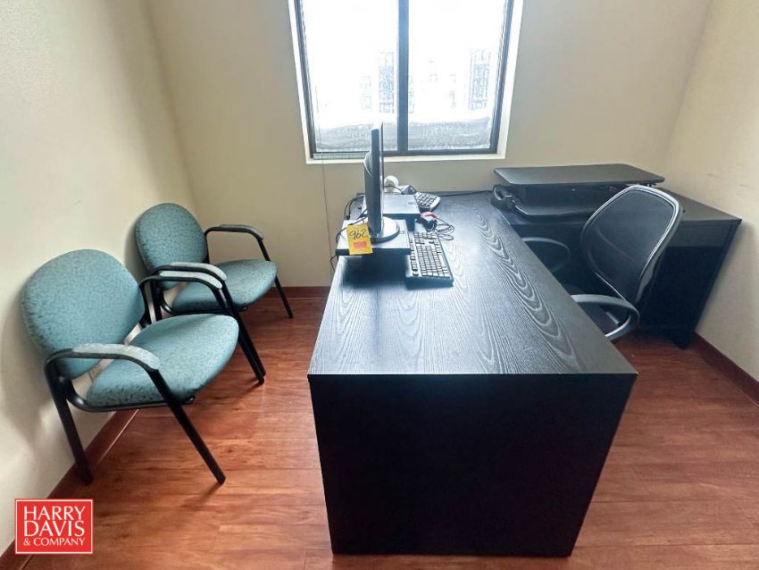 Desk, (3) Chairs, Monitor, Keyboard, Mouse, HP CPU, File Cabinet, Hutch, Adjustable Monitor Platform and Canon MPIIDX Calculator - Rigging Fee: $300 (*Subject to ENTIRE CATALOG BULK BID: Lot 1009)