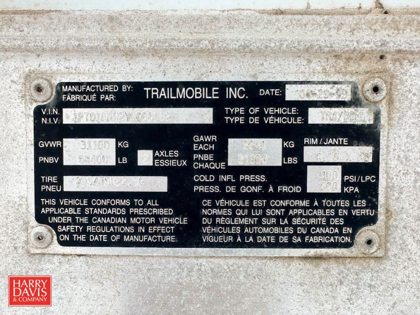 1999 Trail Mobile Reefer Trailer: 53' with Thermo King Chiller, Model: U3444, VIN#: 1PT01ANH2Y9U00882 - Rigging Fee: $75 (*Subject to ENTIRE CATALOG BULK BID: Lot 1009)