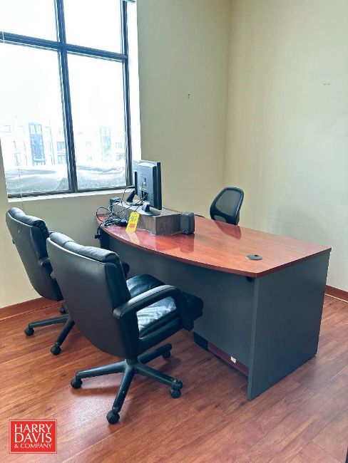 Desk, (3) Chairs, (2) File Cabinets, (2) Monitors, Keyboard, Mouse and (2) Logitech Speakers - Rigging Fee: $300 (*Subject to ENTIRE CATALOG BULK BID: Lot 1009)