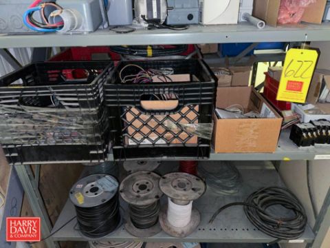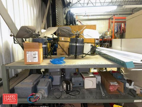 Assorted Electrical Boxes, Ballasts, Wiring, (2) Cabinets: 3' x 18" x 40" and Shelf: 49" x 2" x 70" - Rigging Fee: $350 (*Subject to ENTIRE CATALOG BULK BID: Lot 1009)