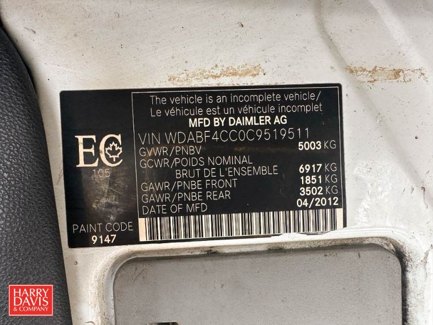 2012 Mercedes 14' Box Truck, Model: 3500 with Zinati Chiller, Model: FZ348, Model: 4Z248, Vin#: WDABF4CCOC9519511 - Rigging Fee: $125 (*Subject to ENTIRE CATALOG BULK BID: Lot 1009)