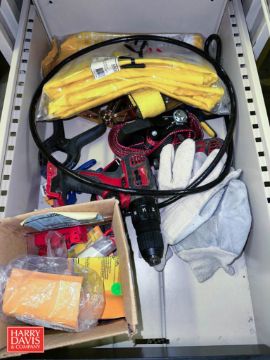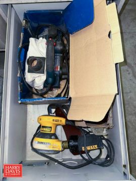Torpedo Heater, Accida Circular Saw, Grinders and Wheels, Belt Sander, Belt and Disk Sander, Couplings, Outlet Covers, Junction Boxes, Extension Cord, Air Hoses, Air Hose Fittings, Pipe Benders, (2) File Cabinets and (2) Shelves: 4' x 2' x 67" and 4' x 18" x 7' - Rigging Fee: $350 (*Subject to ENTIRE CATALOG BULK BID: Lot 1009)