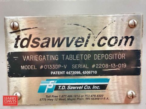 T. D. Sawvel S/S Automated Varigating Volumetric Depositing Machine, Model: 0133DP-V, S/N: 2208-13-019, S/S Base: Mounted on Casters, Operator Foot Control Panel and Manual (Currently filling Pints, 1/2 Gallons and 2.5 Gallons) (Location: Lansdale, PA) - Rigging Fee: $275