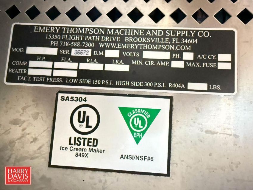 Emery Thompson Single Barrel 44-Quart Ice Cream Freezer, Model: 44BLT-10C-3, S/N: 36672 (Location: Lansdale, PA) - Rigging Fee: $750