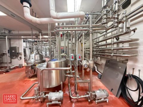 2020 CFR Whey HTST System, Including: AGC S/S Frame 3-Zone Plate Heat Exchanger, Model: PROXPH, S/N: 2020104200, S/S 30 Gallon Vertical Expansion Tank, (4) Fristam Centrifugal Pump: 1.5, 3, 5 & 7.5 HP, Shell & Tube Heat Exchanger with Steam Trap, and Endress+Hauser 2” Magnetic Flowmeter, 3” 4-Pass: 10’ Holding Tube, AV-9900 Chart Recorder, S/N: 2000363, Anderson Dart, Anderson Differential Pressure Switch, Air Solenoid Panel and S/S Control Panel with Allen-Bradley PanelView Plus Touch Screen HMI -- Rigging Fee: $5,000