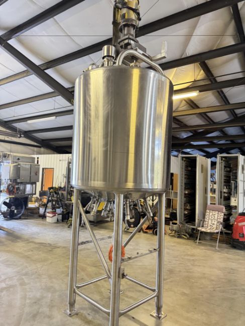 Feldmeier 250 Gallon S/S Dome-Top, Dish-Bottom Mix Tank, S/N: E-0104-09 with Bottom Steam Injection, Vertical Agitation, Adjustable Baffle, Waukesha Cherry-Burrell Air Valve and Sensor (Location: Export, PA) - Rigging Fee: $975
