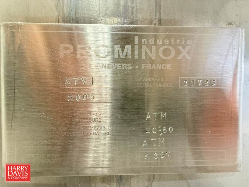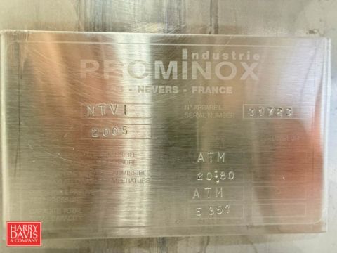 Prominox 1,500 Gallon Insulated Dome-Top, Dish-Bottom Vertical S/S Tank, Model: NTVI, S/N: 31723 with 3" Bottom Center Outlet - Rigging Fee: $1,500