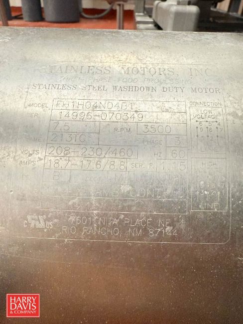 S/S Fristam Centrifugal Pump, Model: FP7221130, S/N: 22167481 with 7.5 HP 3,560 RPM Motor: Mounted on S/S Base - Rigging Fee: $175