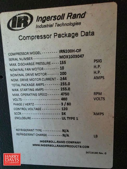 Ingersoll Rand 200 HP Air Compressor, Model: IRN200H-OF, S/N: MOX1003047 with IR Compressed Air Filter - Rigging Fee: $2,500