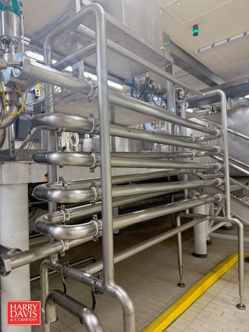 Milk HTST System, Including: APV S/S Frame 3-Zone Plate Heat Exchanger, Model: SR310, S/N: 21470, 125 Gallon S/S Balance Tank, Waukesha Positive Displacement Pump, Model: 18042 with 10 HP Drive: Mounted on Stainless Base, Shell & Tube Heat Exchanger with Steam Trap, APV Centrifugal Pump, Model: 6V2, 3" 5-Pass: 8’ Holding Tube, Tri-Clover 700 Series Flow Diversion Valve Set and Routing Valves, HTST S/S Control Panel with Anderson AV-9900 Chart Recorder, Siemens Touch Screen HMI, Anderson Dart, Anderson Differential Control and S/S Control Panel with Siemens Simatic - Rigging Fee: $6,500
