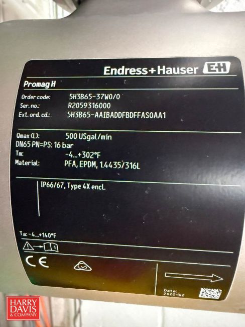 Endress+Hauser 3” Magnetic Flowmeter, S/N: 2059316000 - Rigging Fee: $100