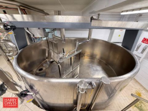 6,000 Liter (1,585 Gallon) Steam Jacketed Cheese Vat, S/N: E0020572-4 with Rotating Curd Cutting, Knife Set and Air Actuated Drain Valve - Rigging Fee: $4,000
