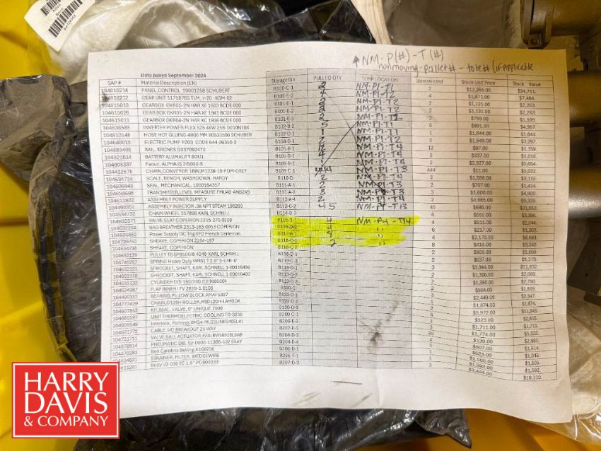 Spare Parts, Including: VideoJet 25 Way I/O Rex Chains and Sprockets, Allen Bradley Circuit Protectors and Sensors (Location: St. Louis, MO) - Rigging Fee: $250