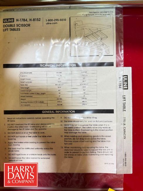 U-Line 770 LB Capacity Lift Table (Location: St. Louis, MO) - Rigging Fee: $250