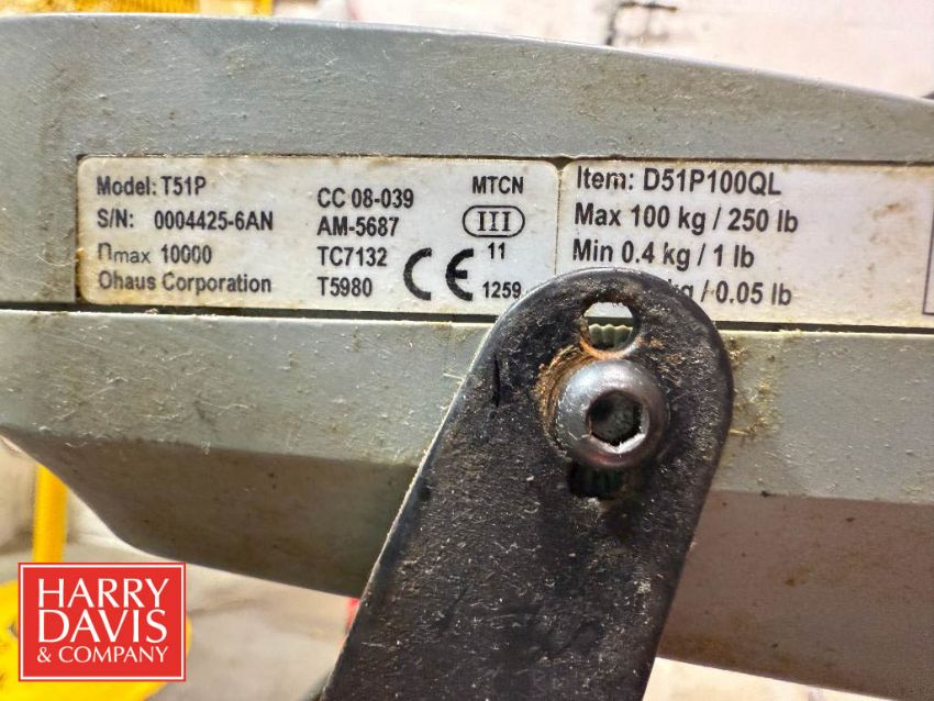 Ohaus Defender 5000 250 LB Capacity S/S Scale: 18" x 18", Model: T51P, S/N: 0004425-6AN - Rigging Fee: $300