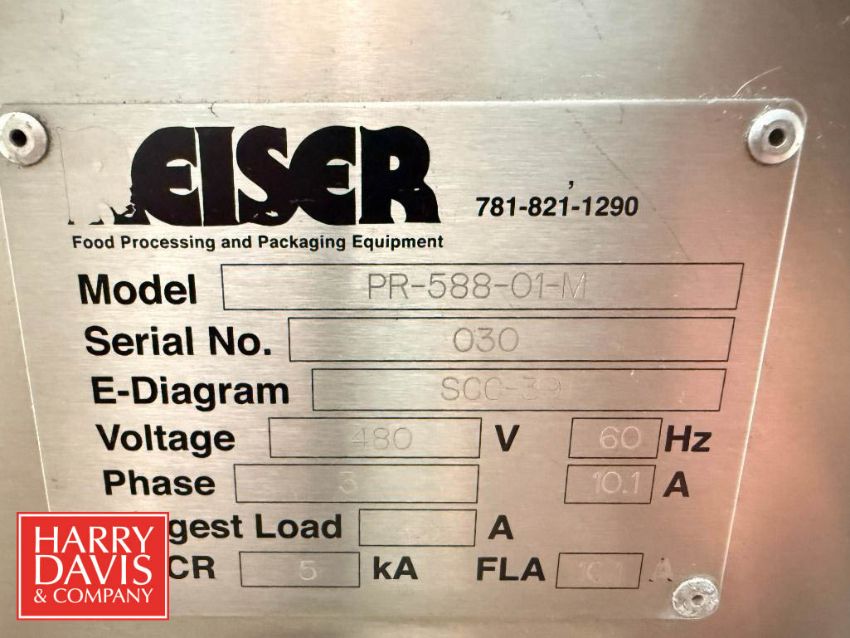 Reiser 3-Phase S/S Portable Depositor, Model: PR-588-01-M, S/N: 030 - Rigging Fee: $200