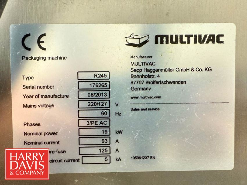 Multivac Thermoforming Packaging Machine, Model: MVSHREDS R245, S/N: 176265 - Rigging Fee: $7,500