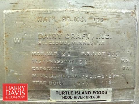 95 Gallon Pressure Tank, S/N: 75JC-2152-1 - Rigging Fee: $500
