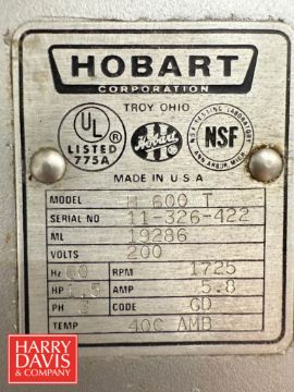 Hobart 3-Phase Mixer, Model: H.600T, S/N: 11-326-422 with (2) Whisks, (1) Paddle, (3) Bowls and (3) Carts - Rigging Fee: $200