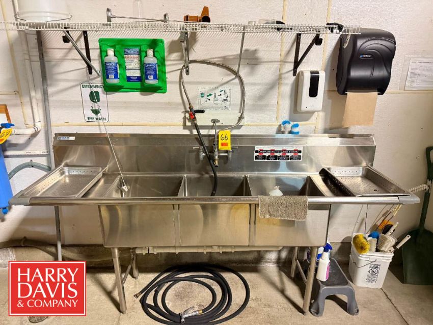 S/S 3 x Compartment Sink: 90" x 20" x 1' Depth (Subject to Confirmation) - Rigging Fee: $250