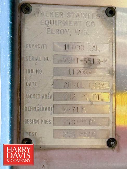Walker 10,000 Gallon Jacketed Silo, Model: V8HT-55L3-R, S/N: 11206 and Horizontal Agitation (Location: Elma, NY) - Rigging Fee: $2,000