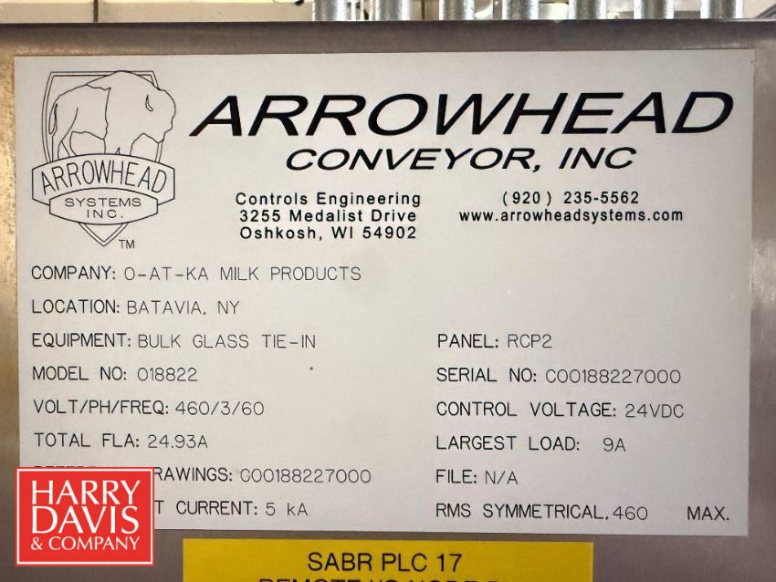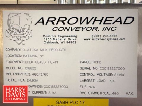 Arrowhead S/S Overhead Conveyor: 50' x 4" with (2) 90° Turns, Panel and Drive (Location: Batavia, NY) - Rigging Fee: $4,600