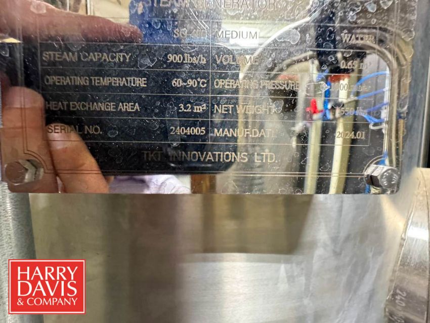 Freeze Dry Chamber, Model: ZMJ75F, S/N: 2404002 with TKT 900 LB Capacity S/S Steam Generator, Model: SG400, S/N: 2404005: Mounted on S/S Base, Leybold Weg Vacuum Pump, (2) Fan Water Softener System and Control Panel with Allen-Bradley PanelView Plus Touch Screen HMI (Location: Albion, NY) - Rigging Fee: Contact HDC