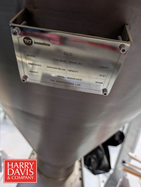 2024 TKT Innovations 4,000 Gallon (15 Cubic Meter Capacity) Cone-Bottom S/S Tank, Model: LC01-00-00, S/N: 2406003 (Tank 3) with (2) Syntron Vibratory Feeders (Subject to Bulk Bid: Lot 200) (Location: Corona, CA) - Rigging Fee: Contact HDC