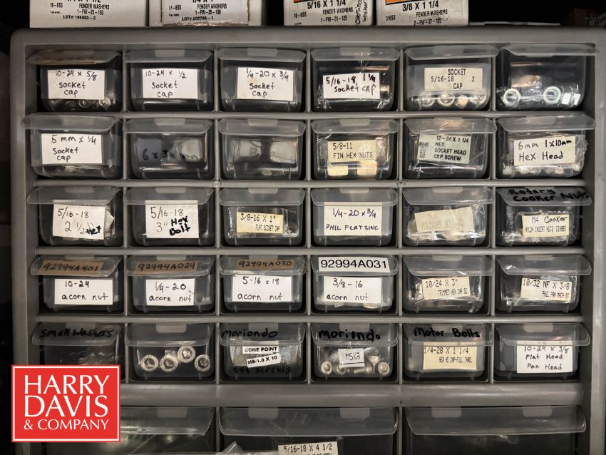 Storage Cabinet with Contents, Including: Socket Caps, Set Screws, Screw Kit, Washer, Allen Heads, Clamp Kits, Wire Wheels and Terminals (Location: Bellmawr, NJ) - Rigging Fee: $75
