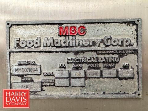 MBC Portable S/S Ravioli Machine, Model: 3-100, S/N: MMRO71874 (Small Round) with 3 HP and (6) 1" S/S Tubes (10-Column) (Location: Charlestown, MA) - Rigging Fee: $250 (Subject to BULK BID: Lot 107B)
