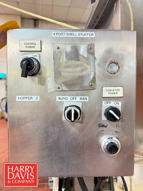 S/S 4-Port Portable Stuffer with On-Board Controls and S/S Chain Transfer Conveyor: 89” x 11” (Location: Bellmawr, NJ) - Rigging Fee: $250
