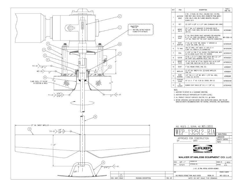 Walker 2,500 Gallon Jacketed S/S Tank, Model: HHT, S/N: WEP-132512 with Vertical Agitation (Location: Export, PA) - Rigging Fee: $1,250
