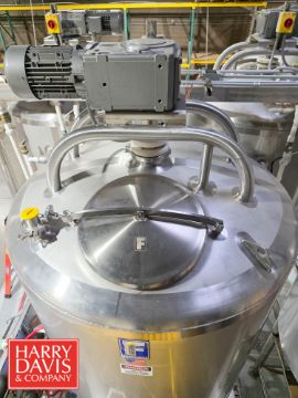 2017 Feldmeier 500 Gallon Dome-Top, Cone-Bottom Vertical Jacketed 304 S/S Processing Tank, Model: EPC, S/N: 17N0779 with Center Outlet, Full Side and Bottom Heat Exchange Zones, Heavy Duty Vertical Wide Sweep Agitation with Baffle and Side and Bottom Scrapers, Nord 3 HP 16 RPM Drive Unit, Temperature RTD, Product Level Shell, 100 PSI @ 350 degrees F. (Construction Drawings on File) - Rigging Fee: $1,250